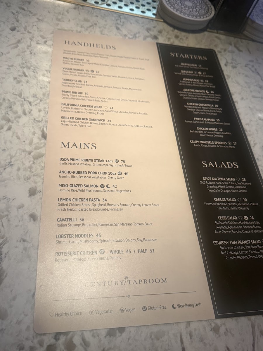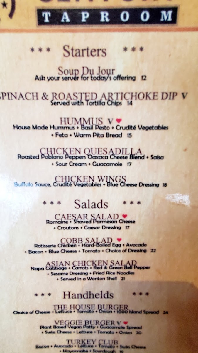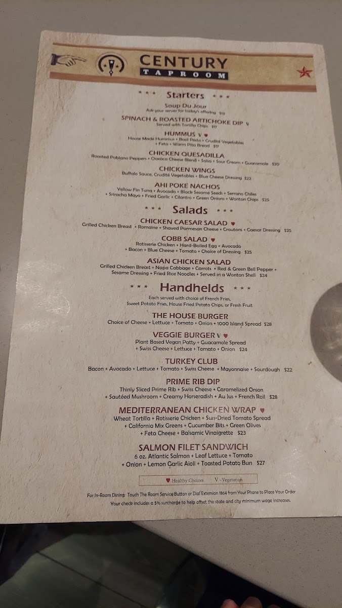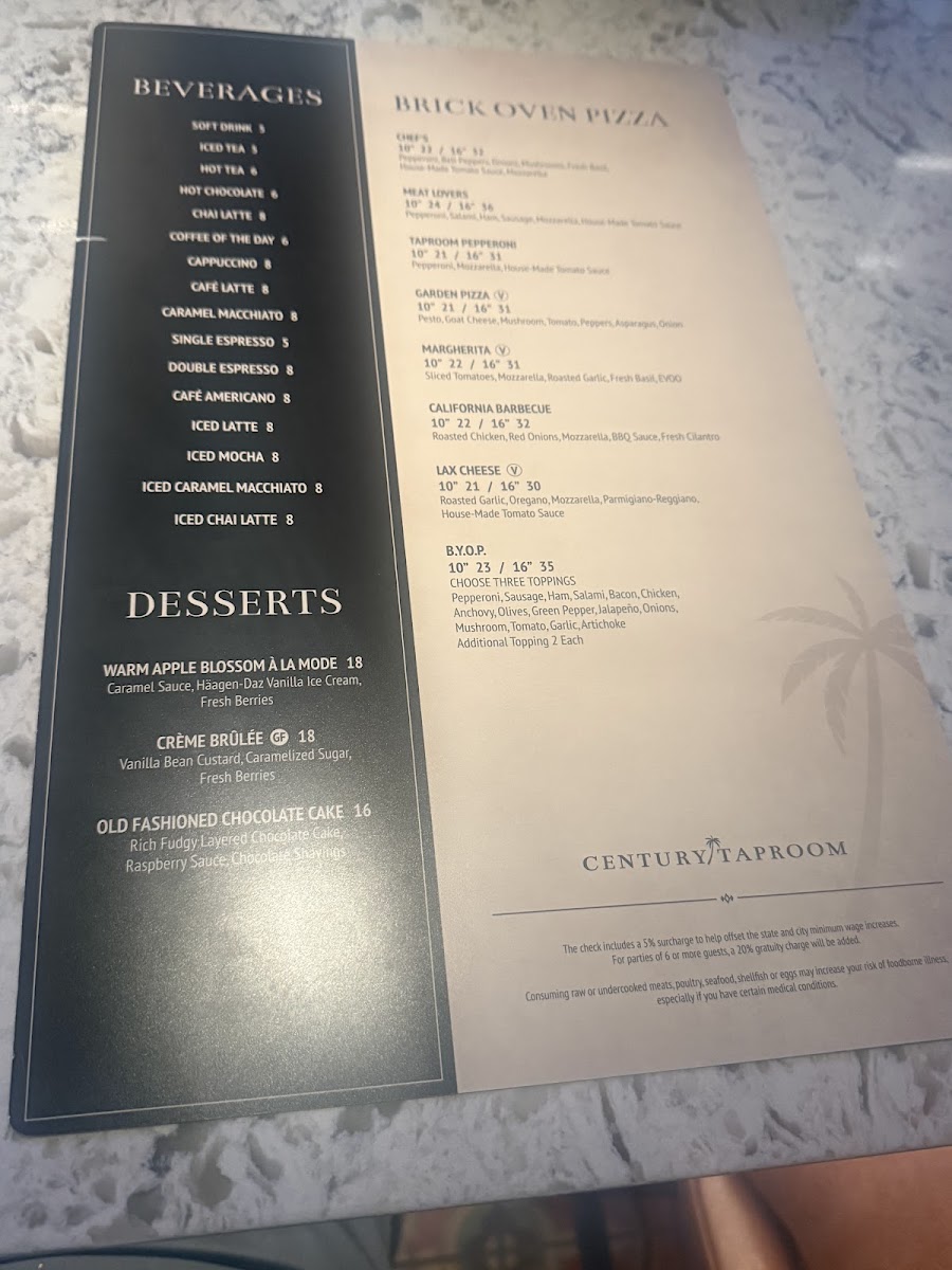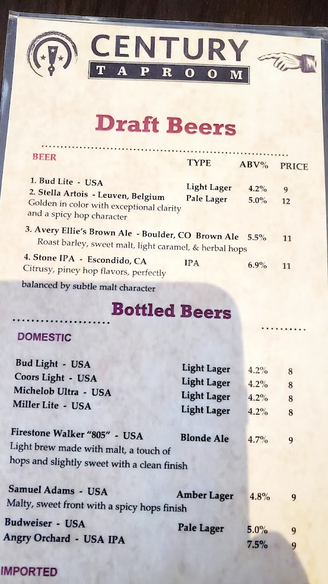 Century Taproom Menu